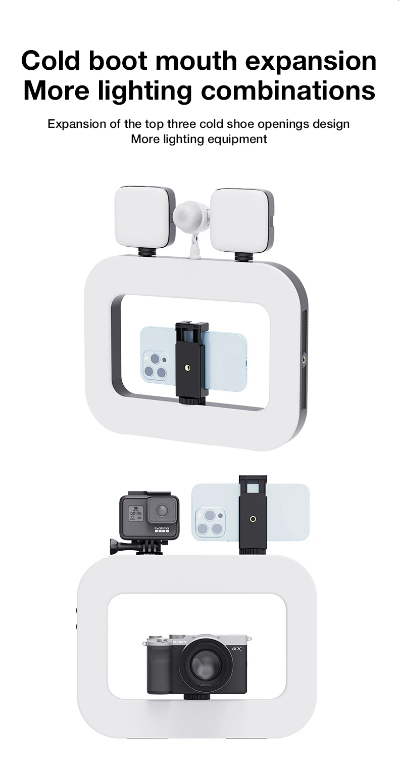 Anneau lumineux LED pour créateurs de vidéos, lumière selfie 5600K, support vidéo pour smartphone, stabilisateur de téléphone pour tournage avec Bluetooth