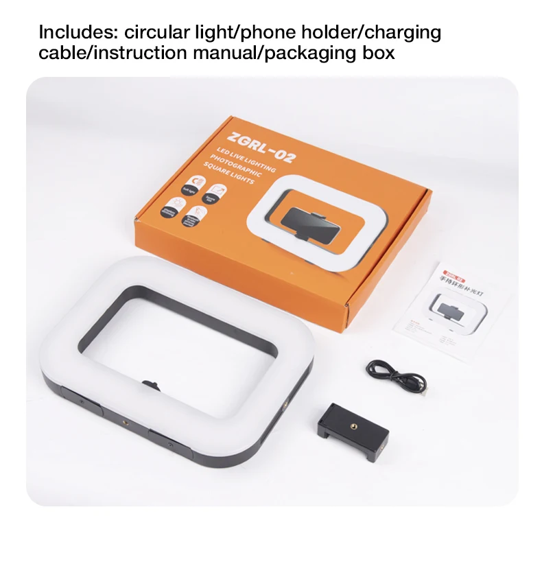 light*1; manual*1, charging cable*1, phone bracket*1 the price do not including tripod stand